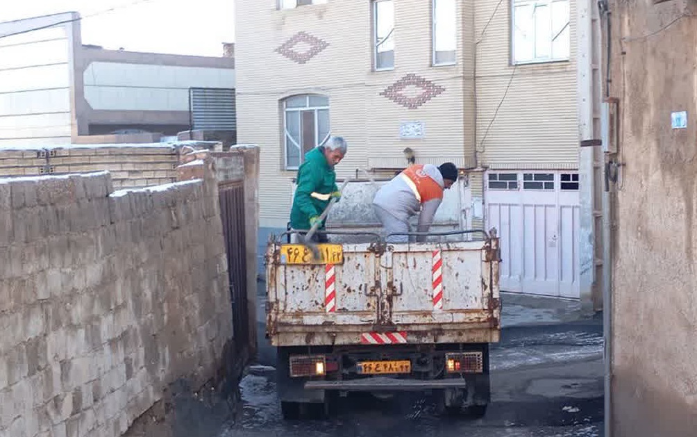 عملیات ایمنسازی معابر یخزده محله مسکن مهر سده لنجان