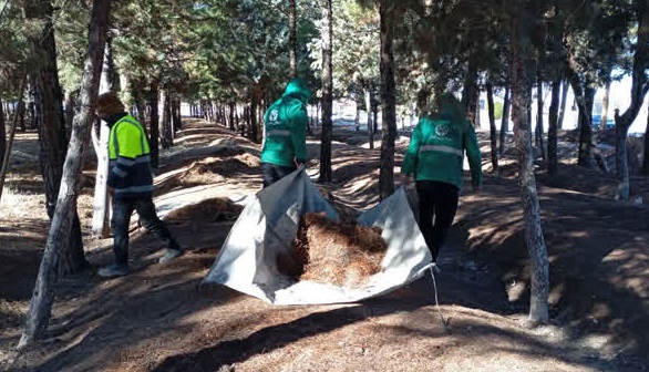 جمعآوری برگهای سوزنی درختان در محدوده دانشگاه آزاد اسلامی لنجان