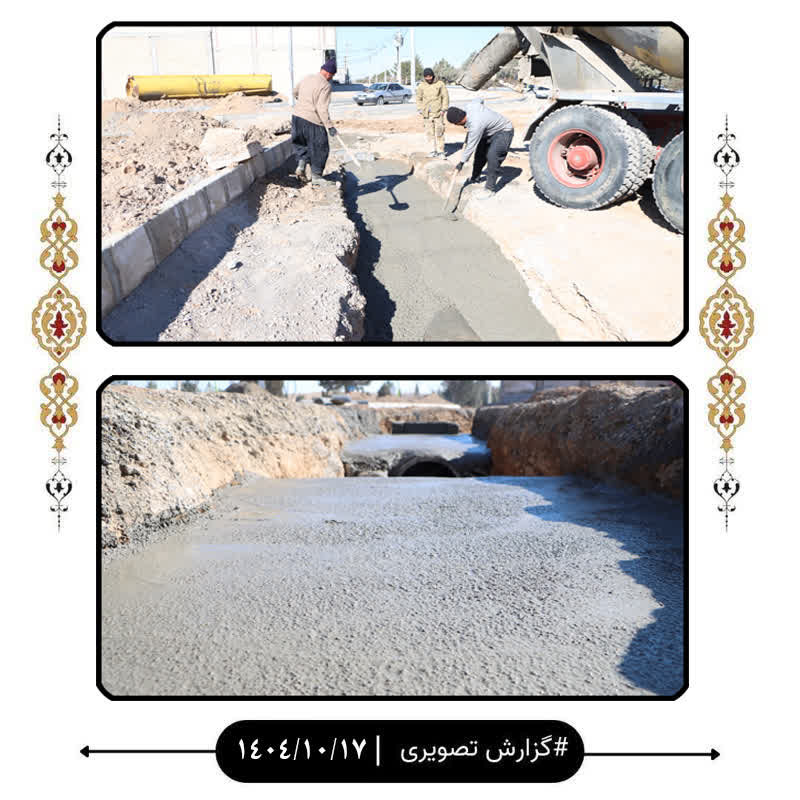 عملیات بتنریزی پروژه دفع آبهای سطحی میدان ورودی شهر در ادامه اجرای این طرح عمرانی انجام شد. این پروژه با هدف هدایت اصولی روانآبها و جلوگیری از آبگرفتگی معابر در یکی از مسیرهای اصلی ورودی شهر در حال اجراست.
